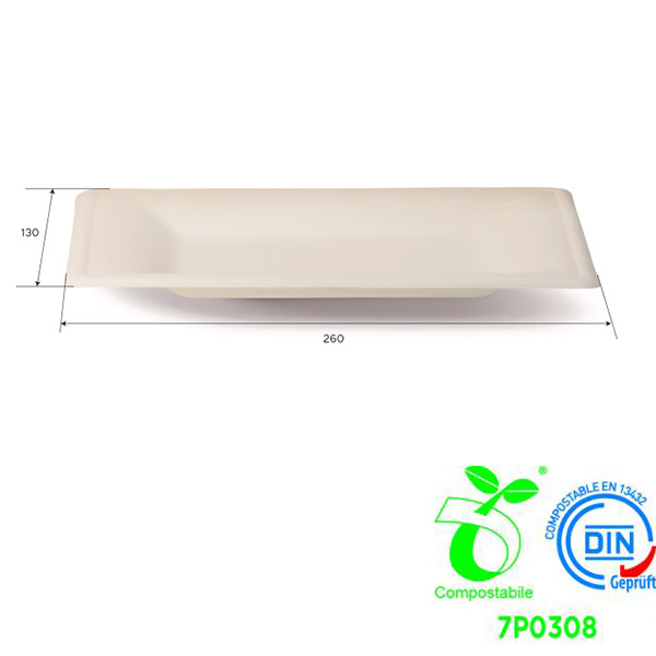 Piatto Bio Rettangolare Canna da Zucchero cm 26×13 Conf. 50 pz.- 433/P