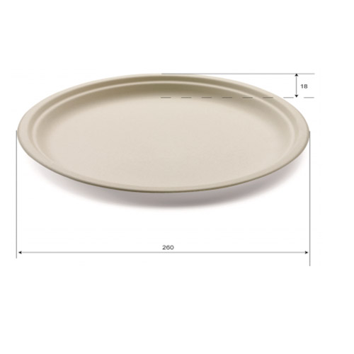 Piatto tondo piano in polpa di cellulosa da canna da zucchero ø 26 cm – 404/P